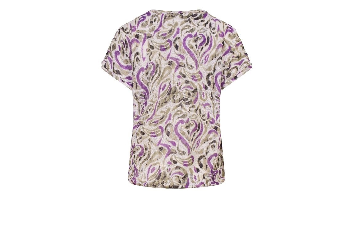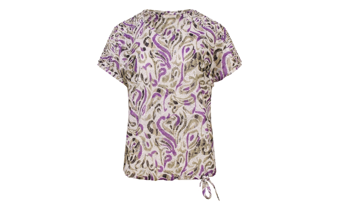 Omschrijving Pol/el jacquard, aquareldessin, gesmockt