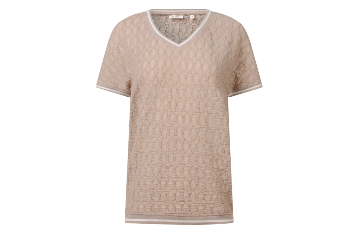 Omschrijving Pol/el reliefstof, ringel/lurex boordjes