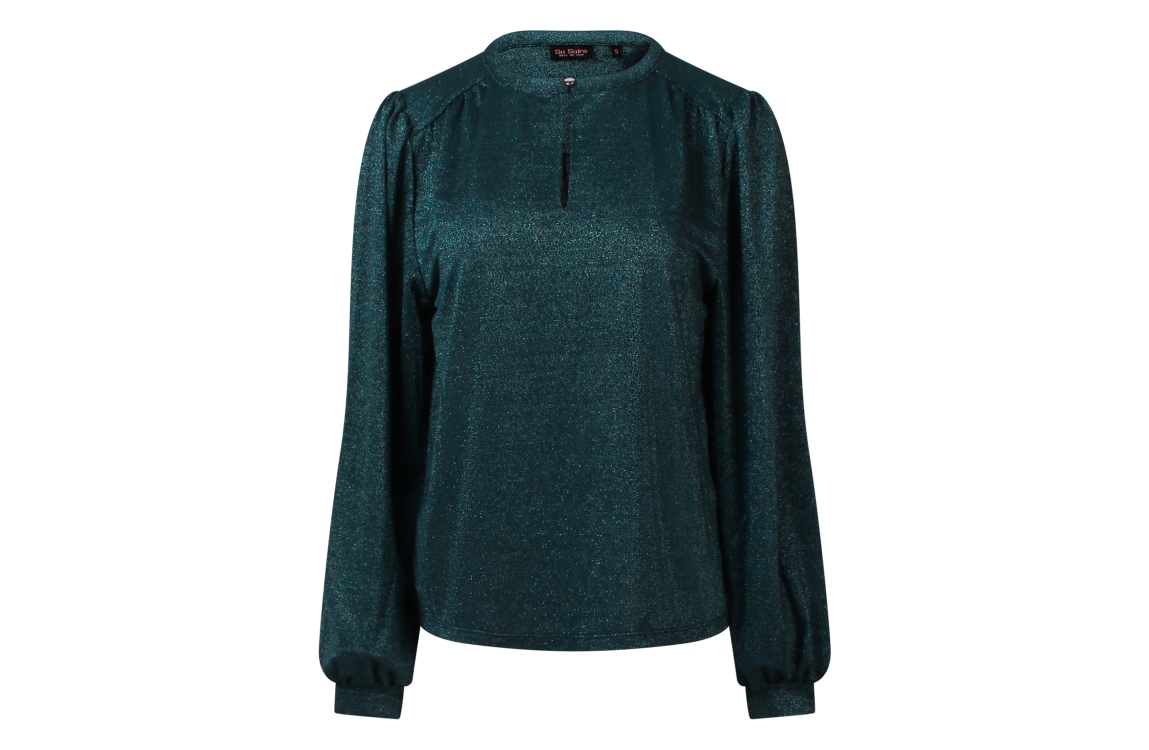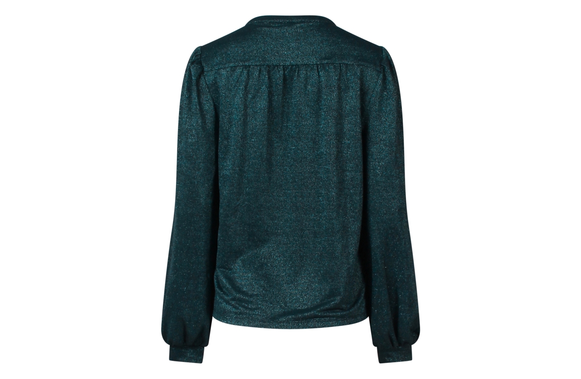 Omschrijving Pol/visc/pa/el met lurex, pofmouw
