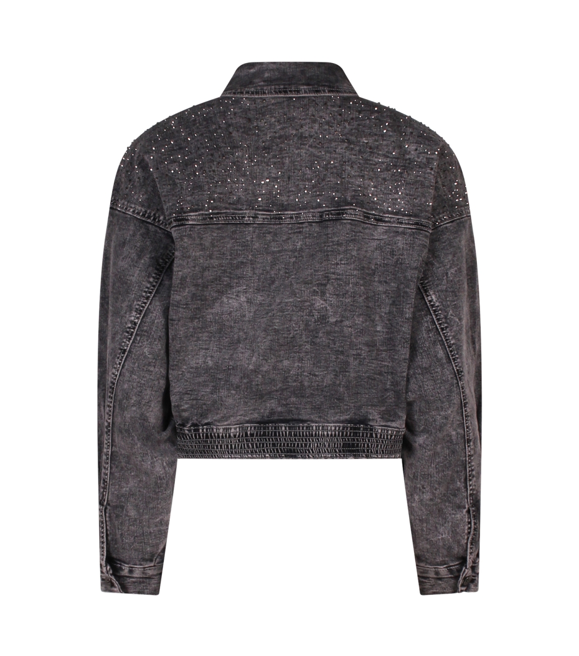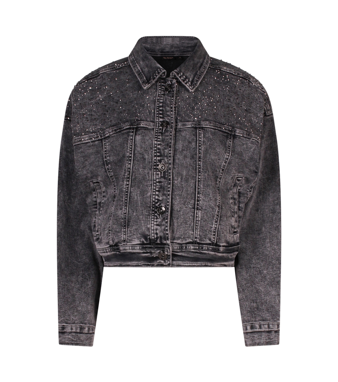 Omschrijving | Co/pol/el denim, strass, boxy fit |