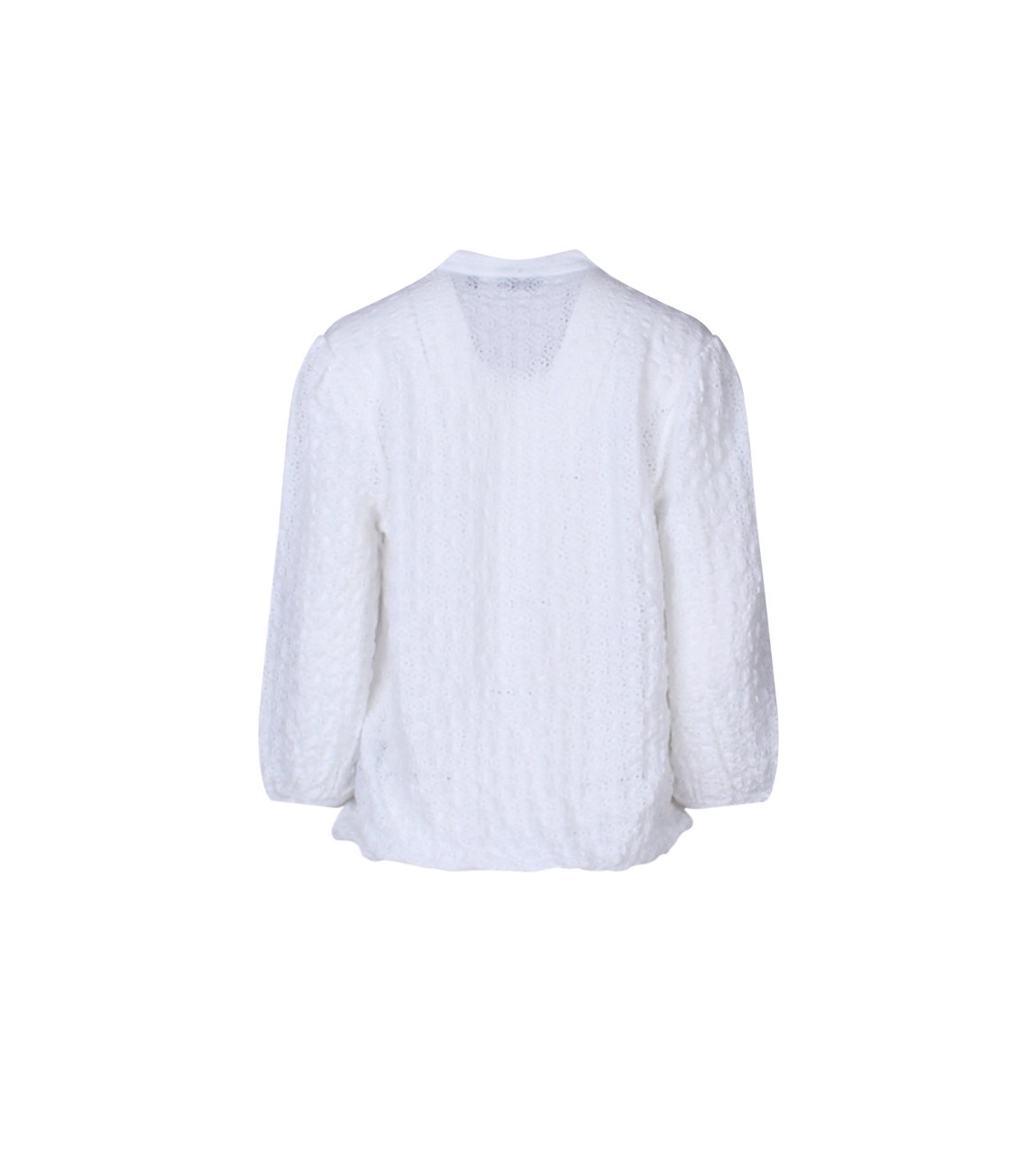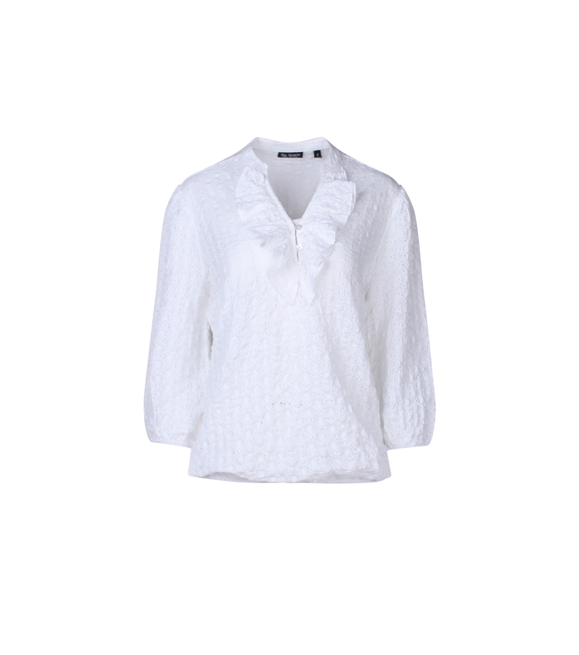 Omschrijving | Pol/el ajour, ruches, 3/4 mouw |