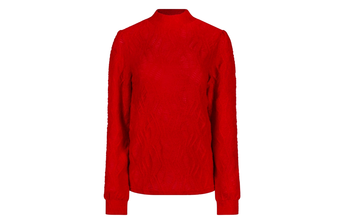 Omschrijving Pol/el, fancy reliefstof, turtleneck