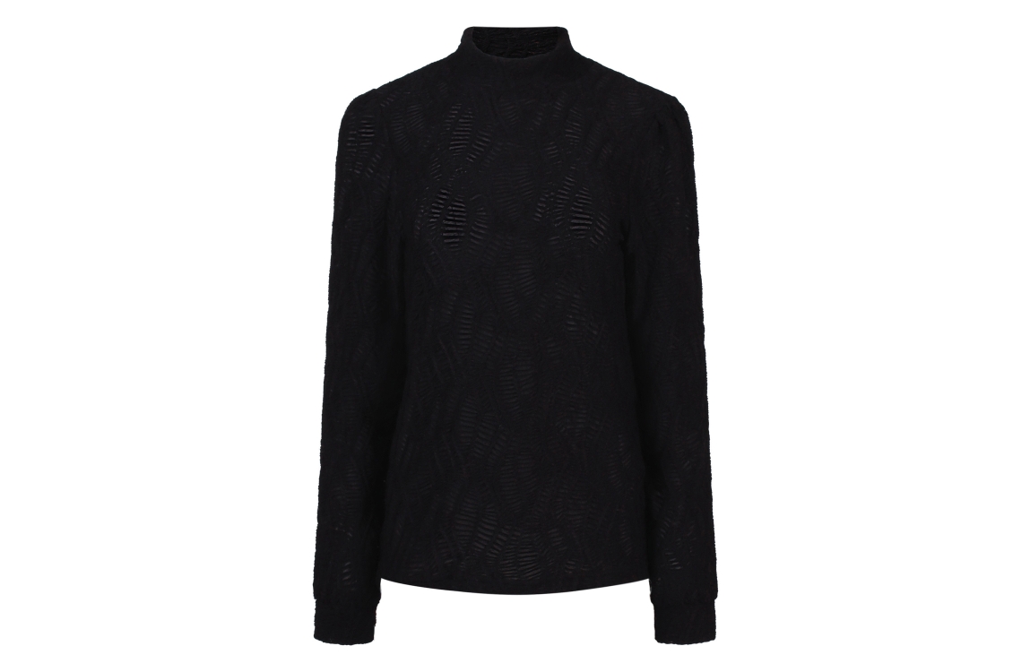 Omschrijving Pol/el, fancy reliefstof, turtleneck