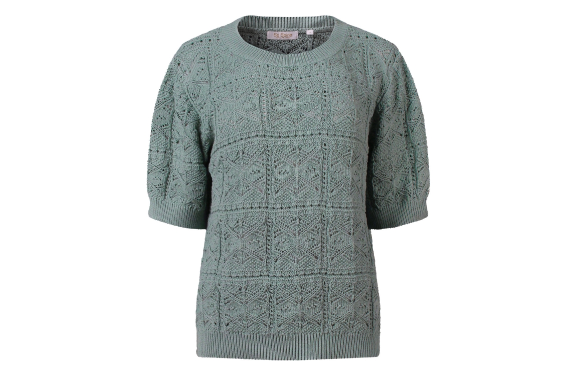Omschrijving Co/acryl brei, ajourpatroon, korte mouw