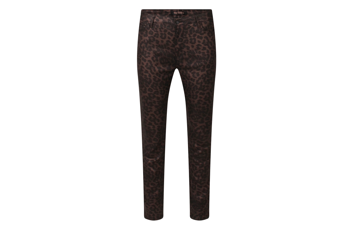 Omschrijving Coated panterdessin, 5-pocket, smalle pijp