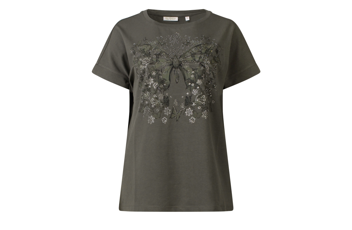 Omschrijving Co/ly, vlinderprint, strass, aangeknipte mouw