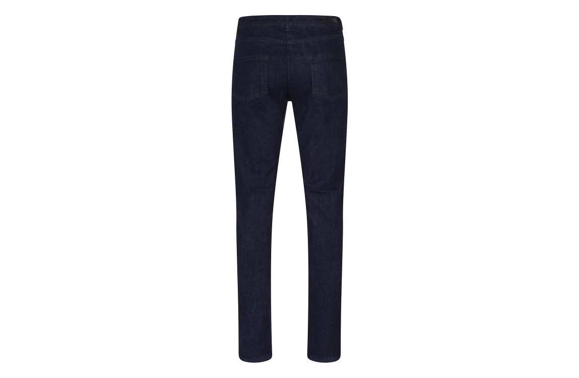 Omschrijving Co/pol/el denim, 5-pocket, smalle pijp