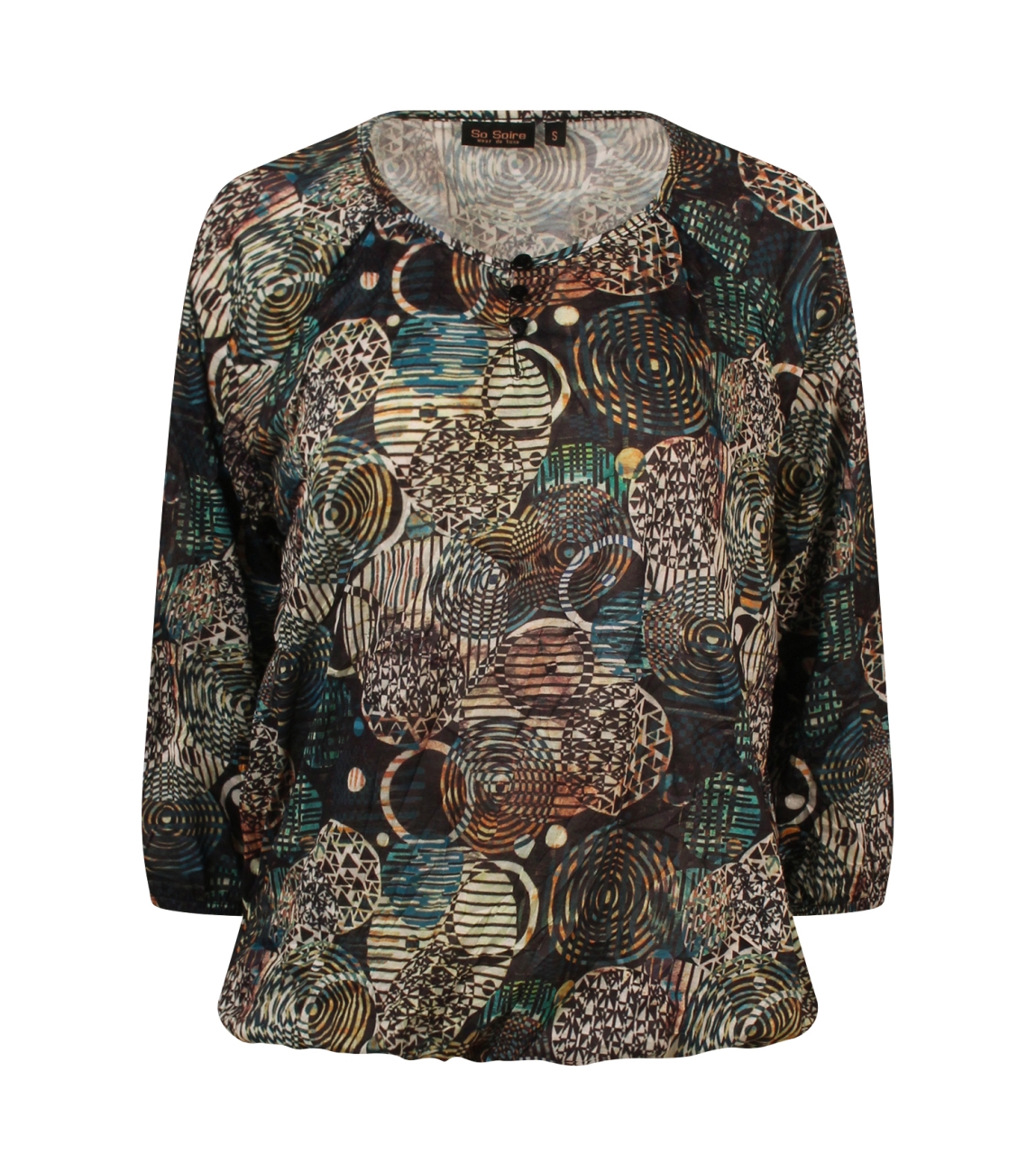 Omschrijving | Pol crush, rondjes/streepjesdessin, 3/4 mouw |