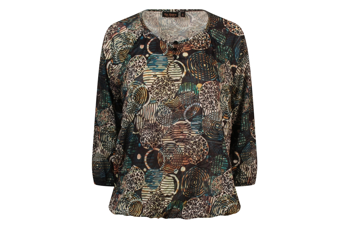 Omschrijving Pol crush, rondjes/streepjesdessin, 3/4 mouw
