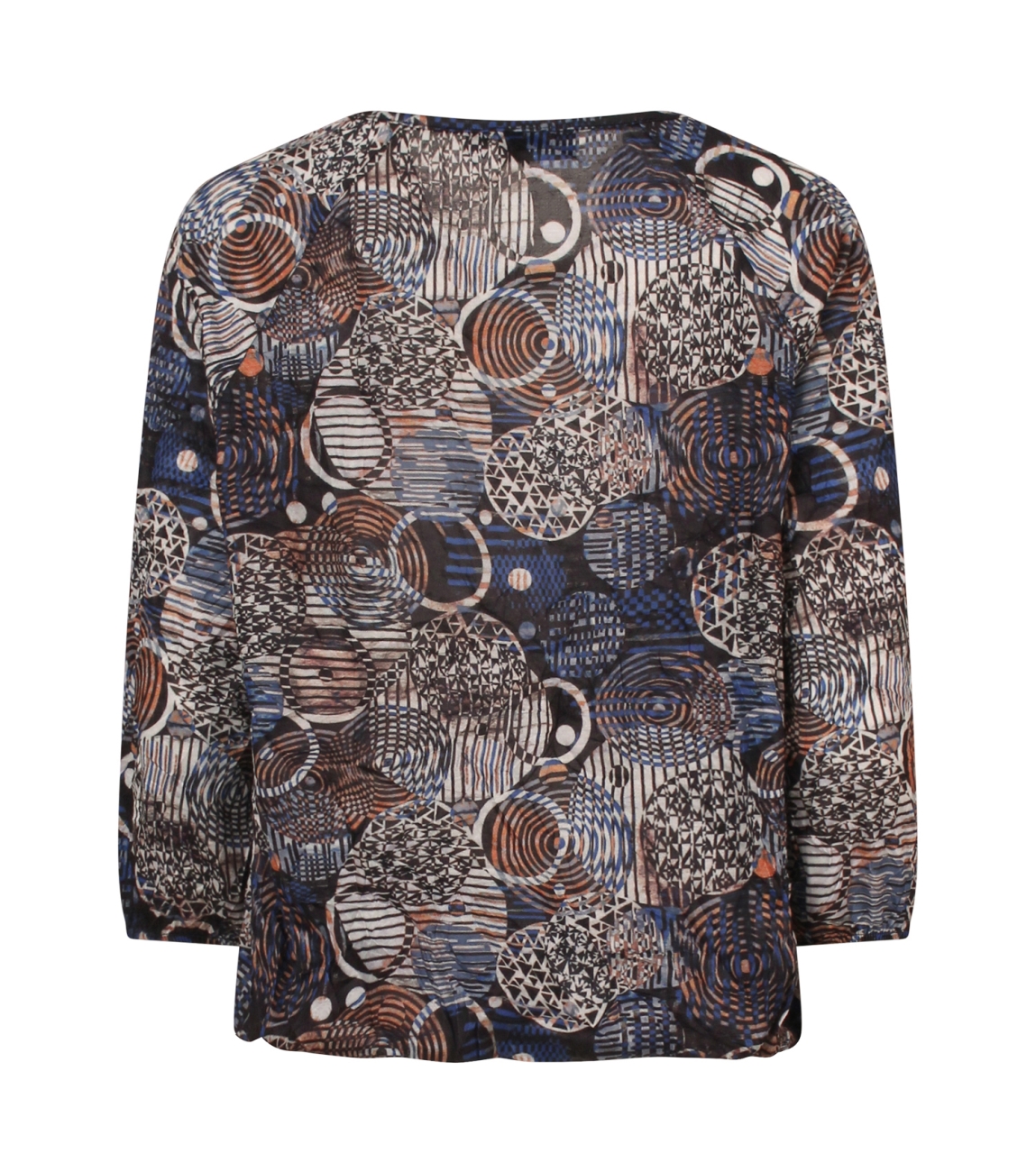 Omschrijving | Pol crush, rondjes/streepjesdessin, 3/4 mouw |
