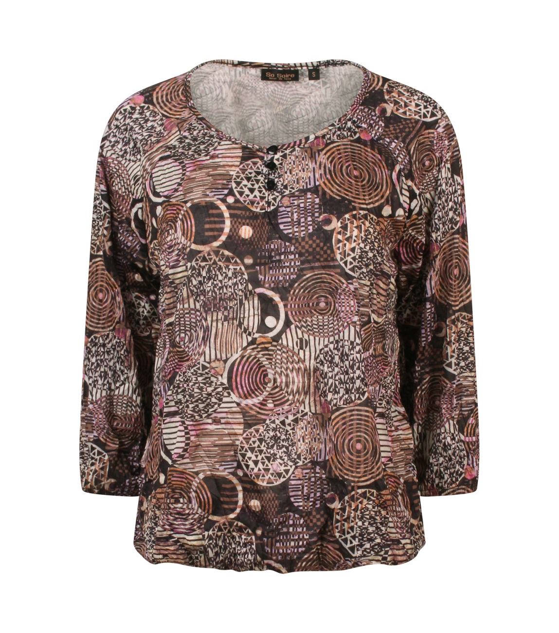 Omschrijving | Pol crush, rondjes/streepjesdessin, 3/4 mouw |