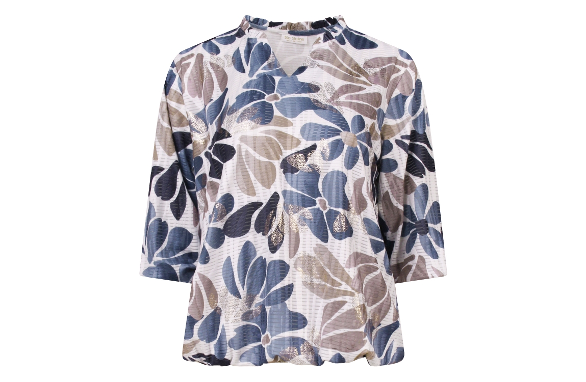 Omschrijving Pol/el jacquard, folie/bloemprint, 3/4 mouw