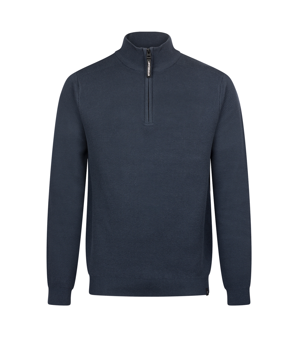 Omschrijving | Co/acr fancy knit, korte rits, schouderpas |