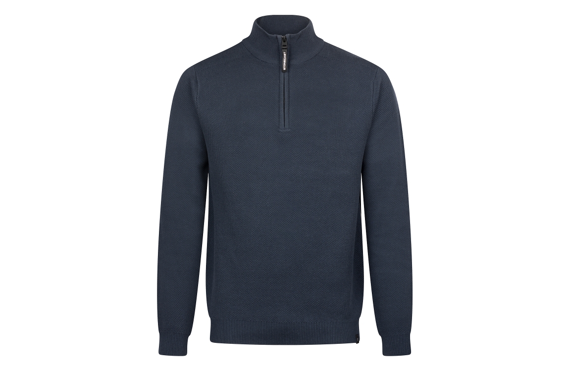 Omschrijving Co/acr fancy knit, korte rits, schouderpas
