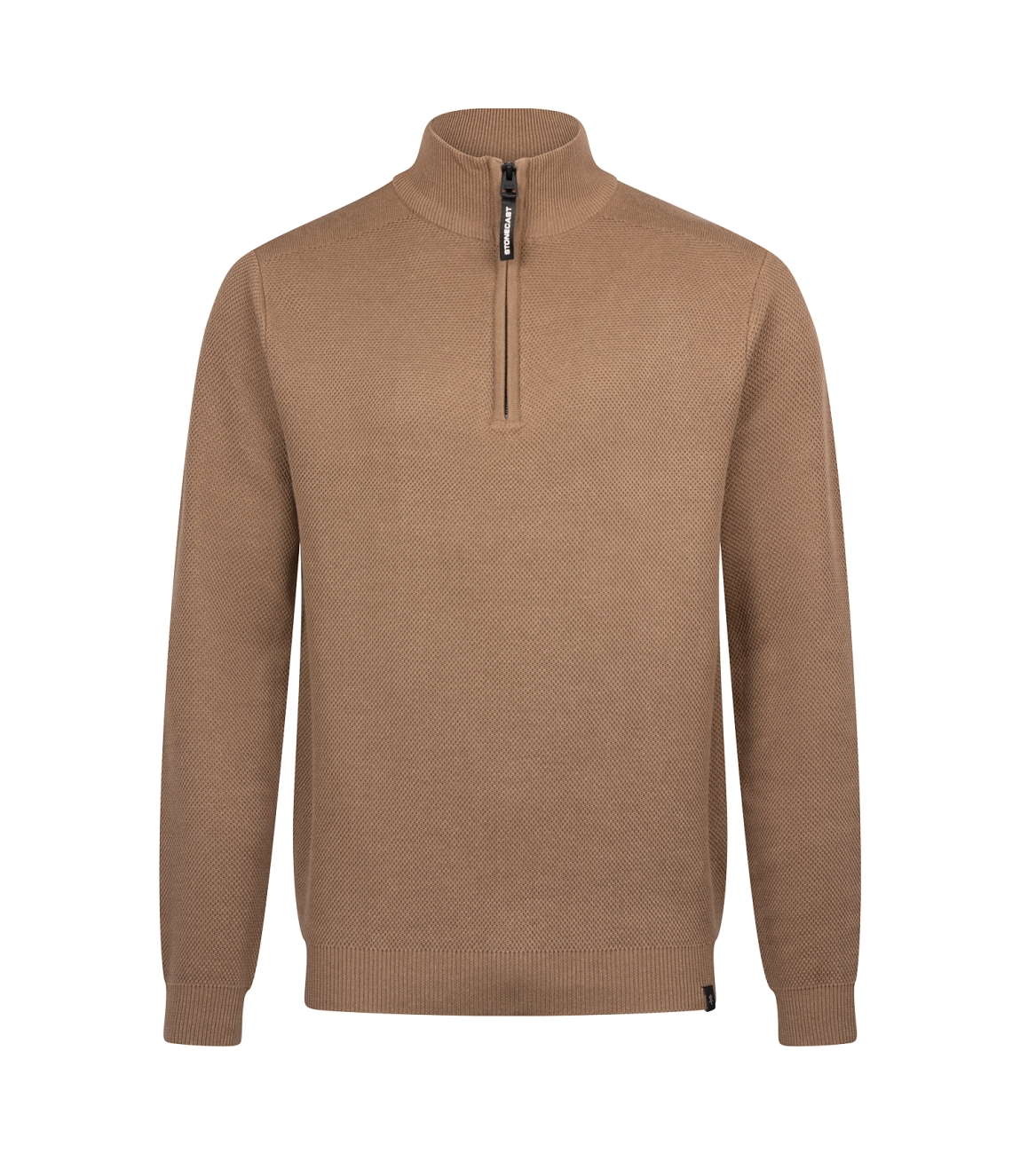 Omschrijving | Co/acr fancy knit, korte rits, schouderpas |