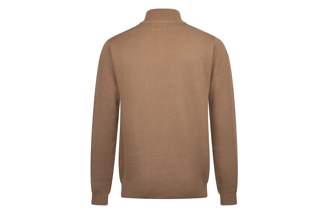 Omschrijving Co/acr fancy knit, korte rits, schouderpas