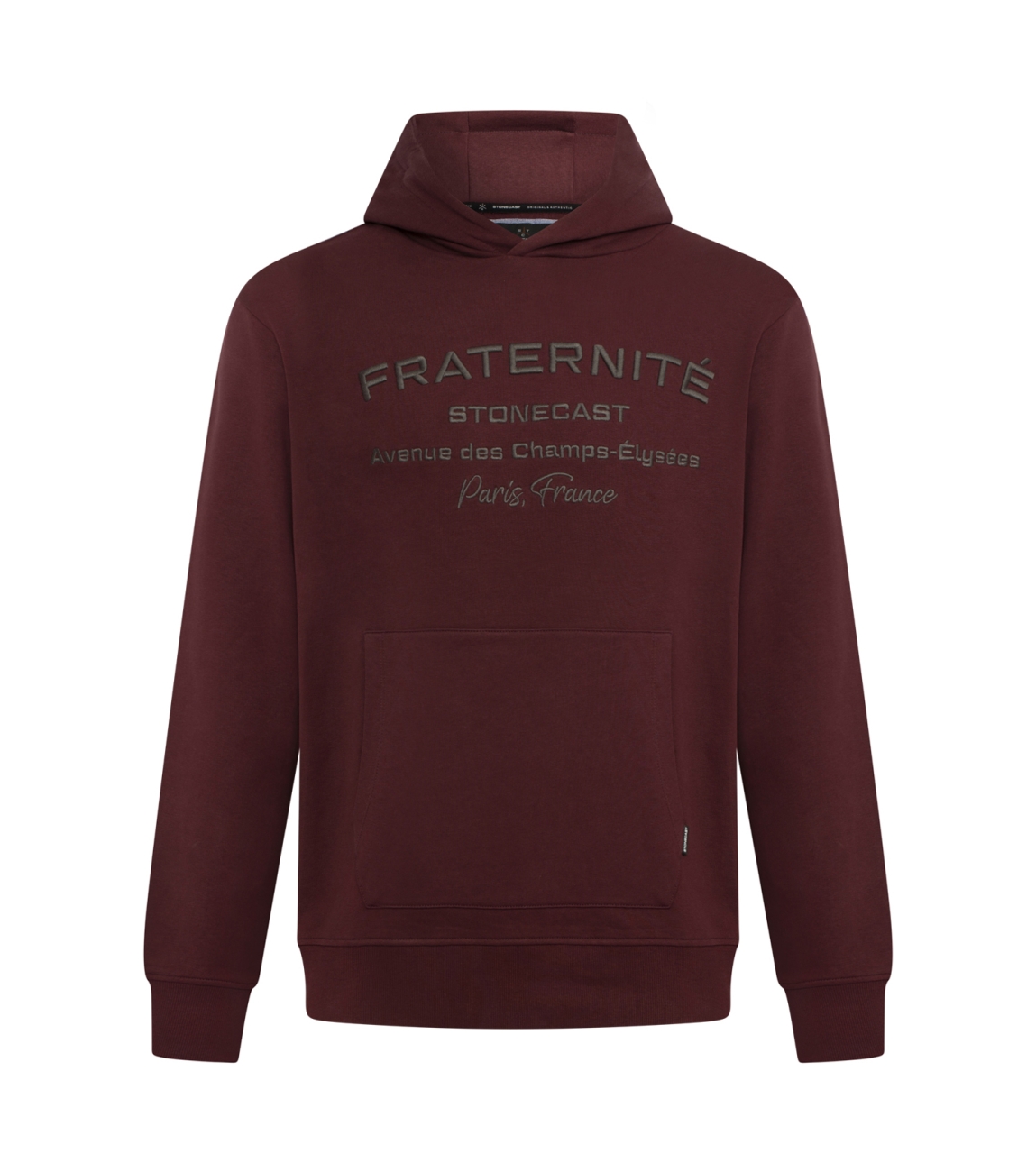 Omschrijving | Co/pol sweat, hood, tekstborduur |