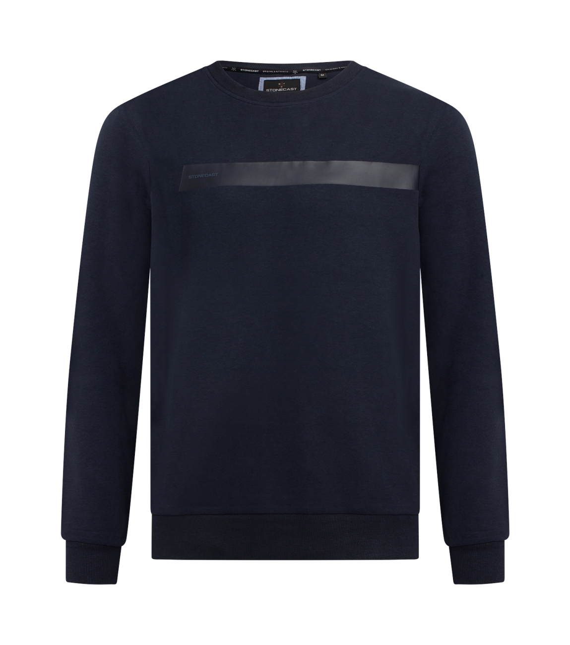 Omschrijving | Co/el interlock, geprinte baan, relieftekst |