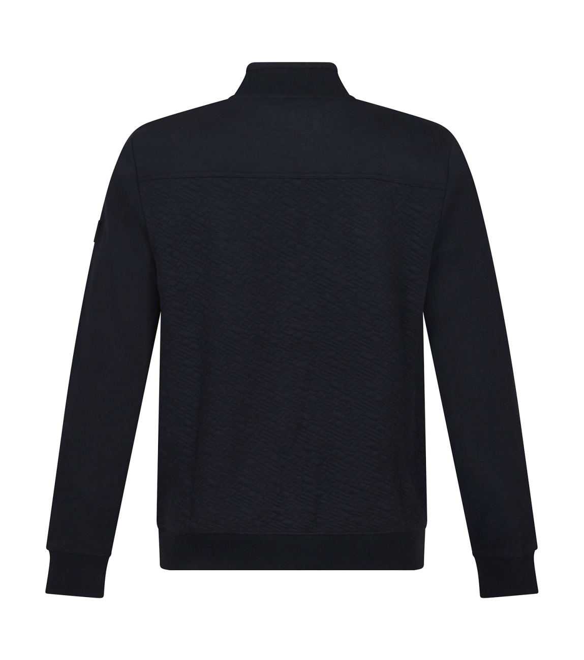 Omschrijving | Co/pol jacquard, strookzakken, rubber badge |