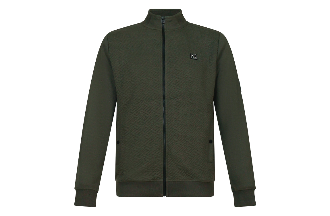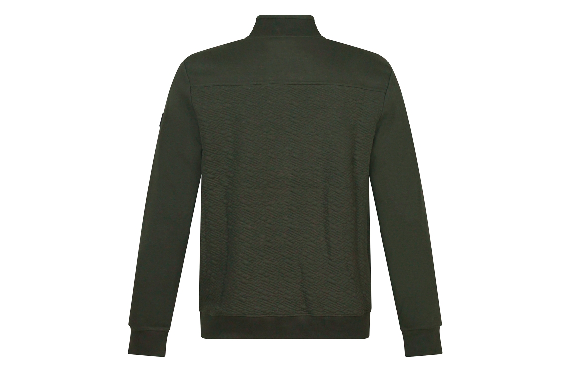 Omschrijving Co/pol jacquard, strookzakken, rubber badge