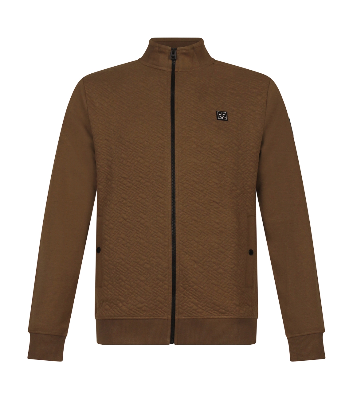 Omschrijving | Co/pol jacquard, strookzakken, rubber badge |