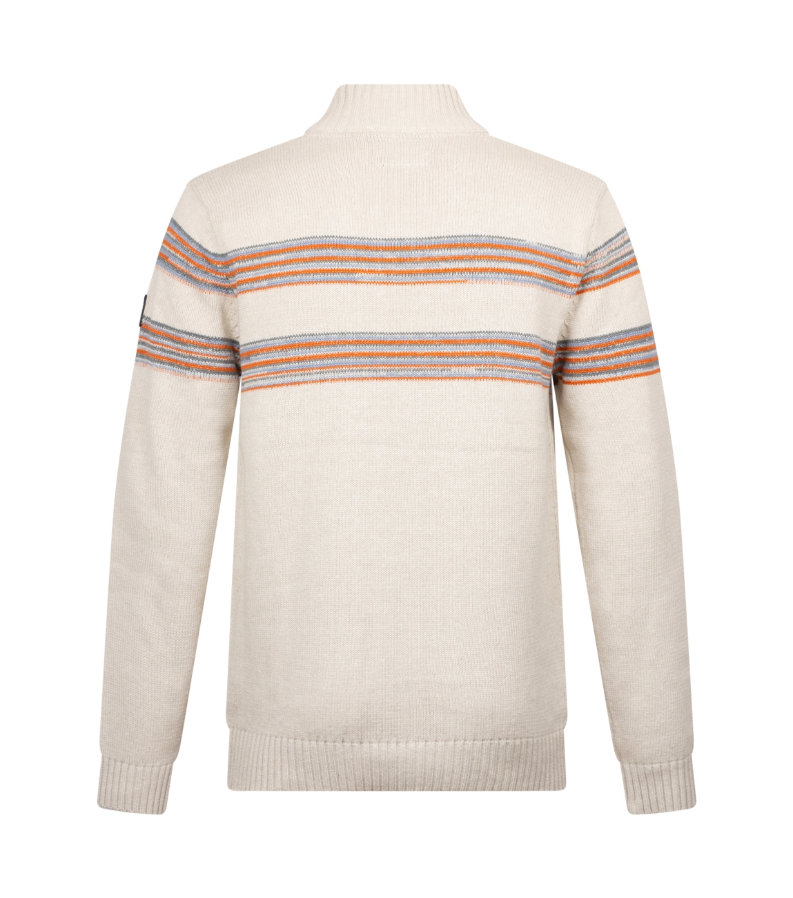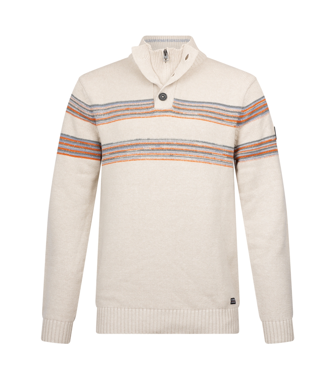 Omschrijving | Brei, melee strepen, dubbele kraag |