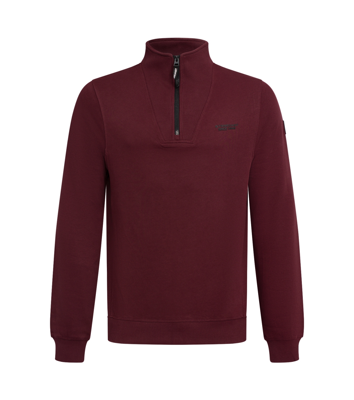 Omschrijving | Co sweat, brei kraag/pas, korte rits |