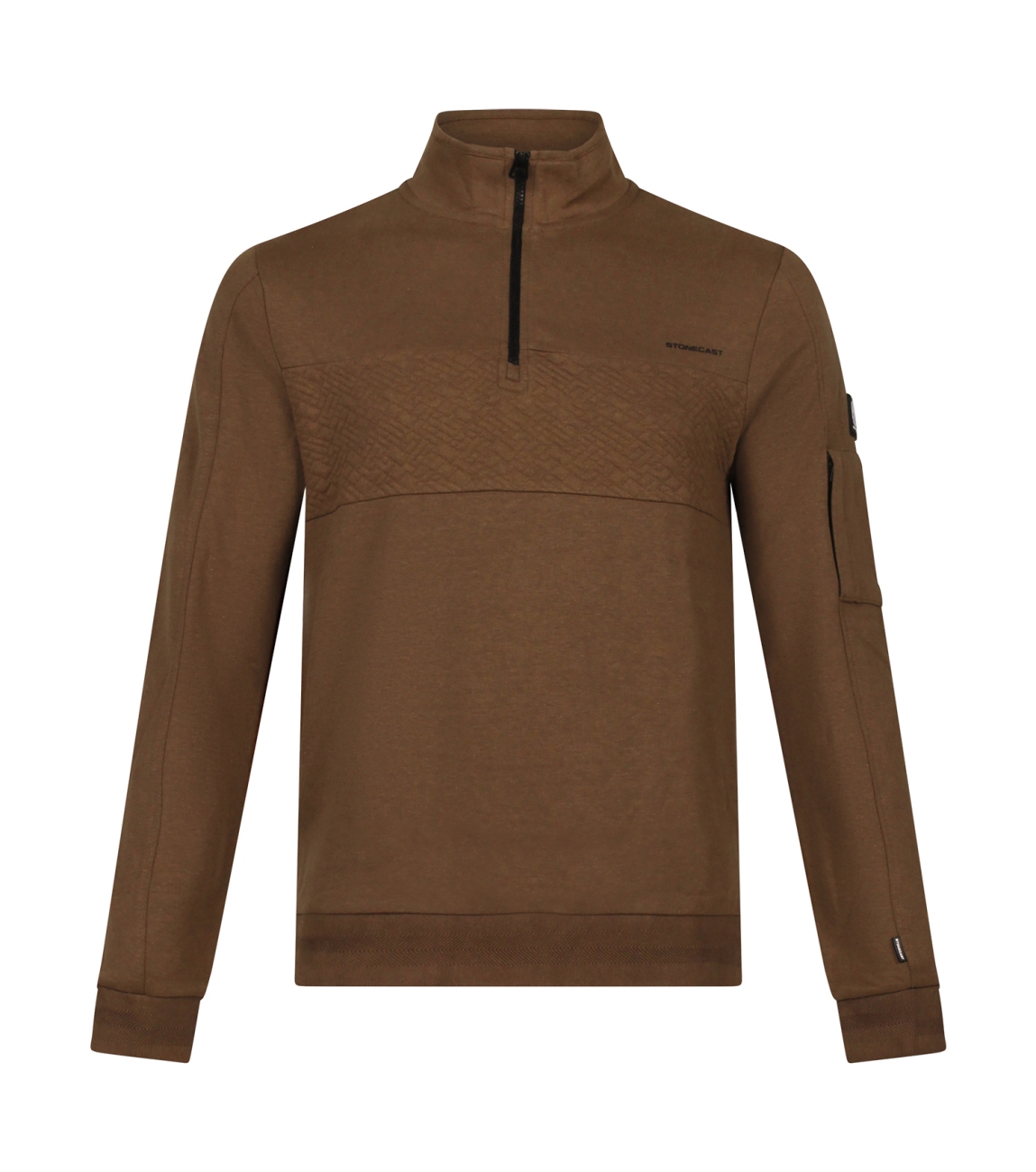 Omschrijving | Sweat/jacquard, rits, zakje mouw |
