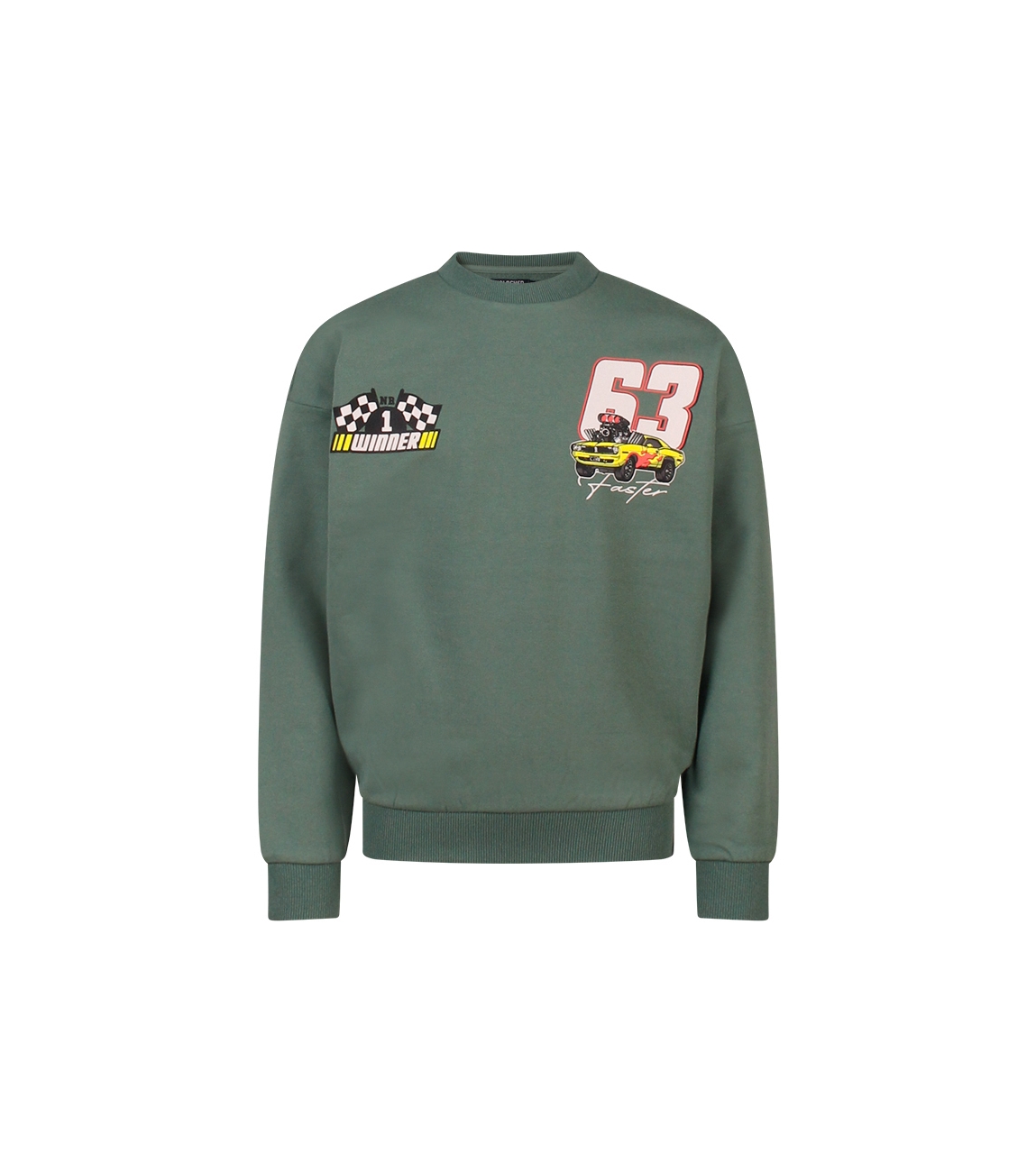 Omschrijving | Sweat, rugprint tekst/auto |