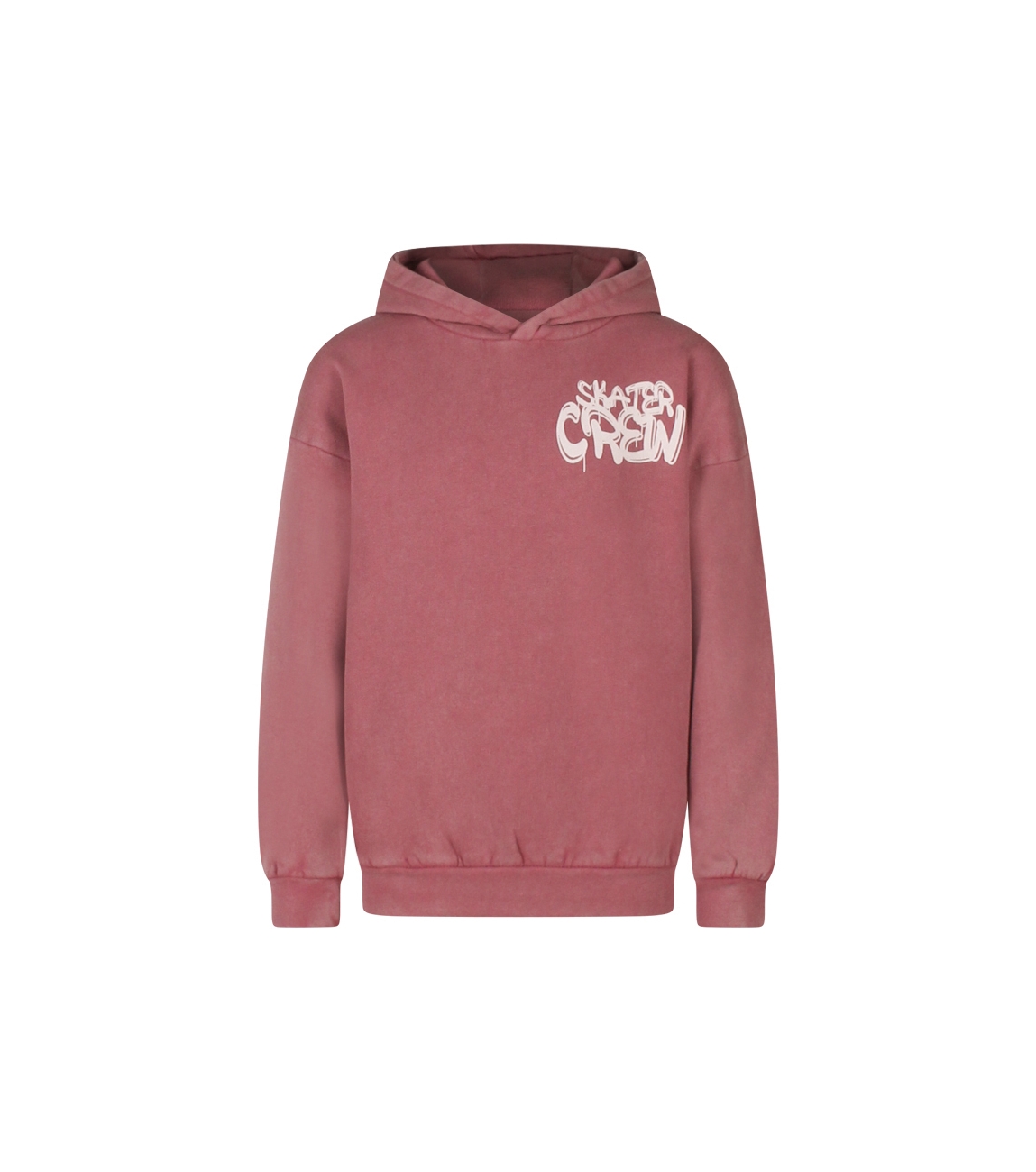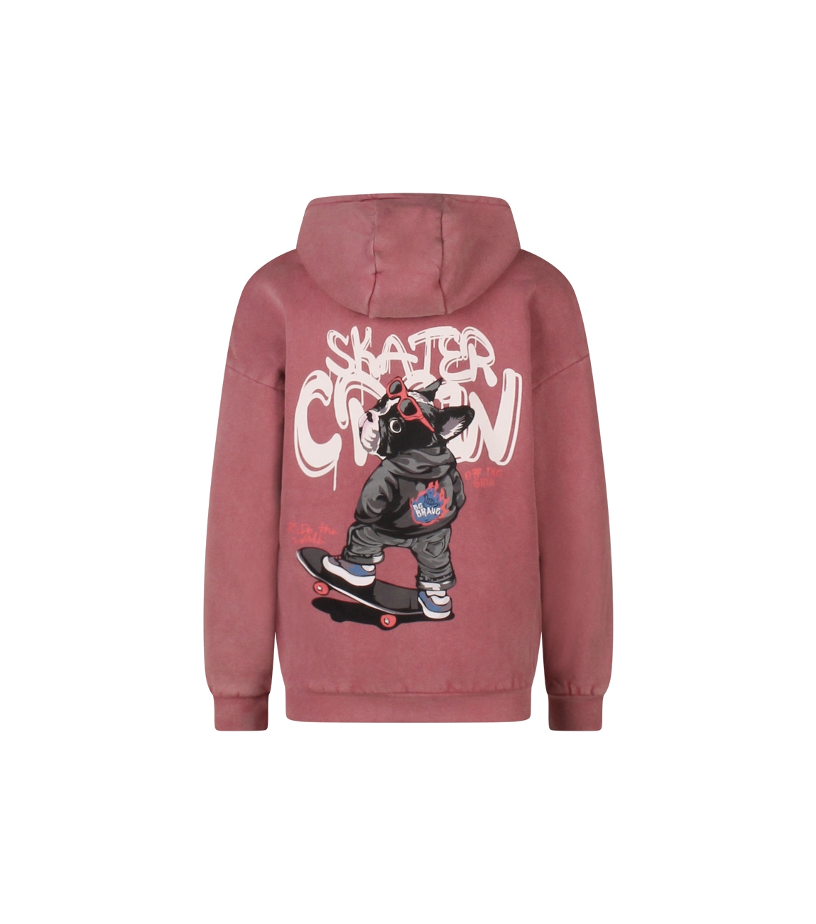Omschrijving | Sweat, acid wash, hood, print voor/achter |