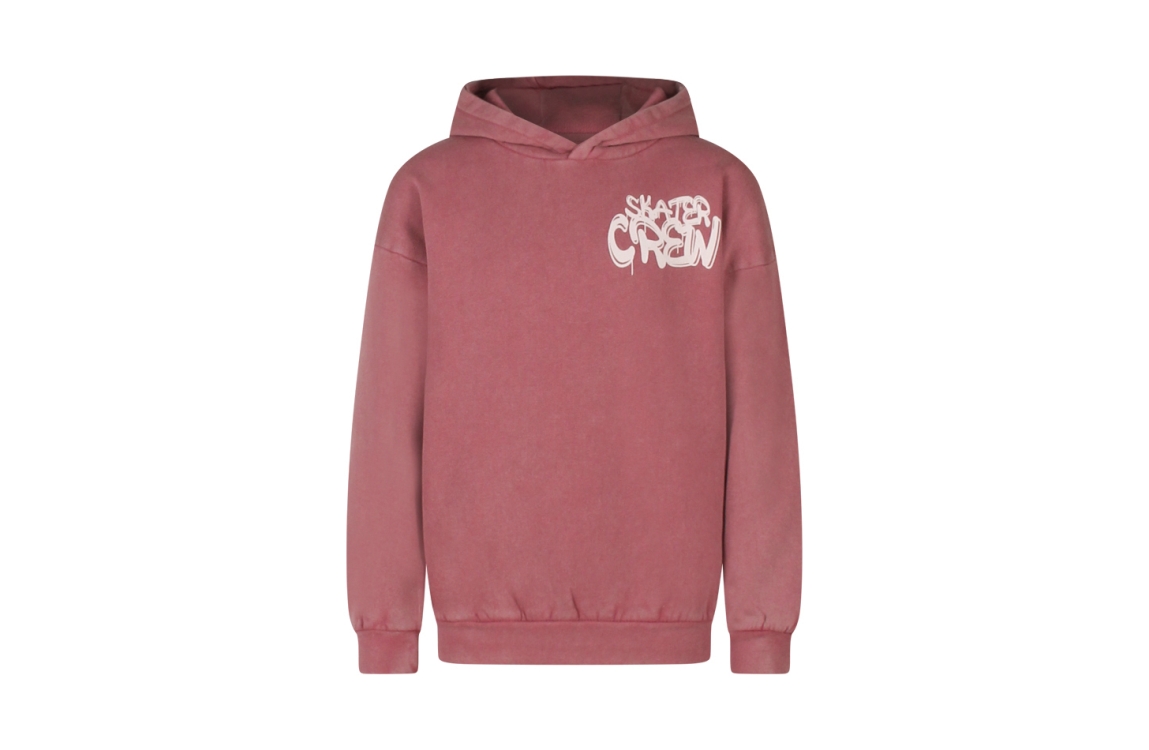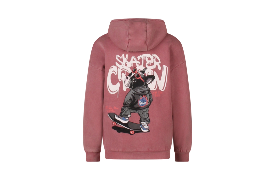 Omschrijving Sweat, acid wash, hood, print voor/achter