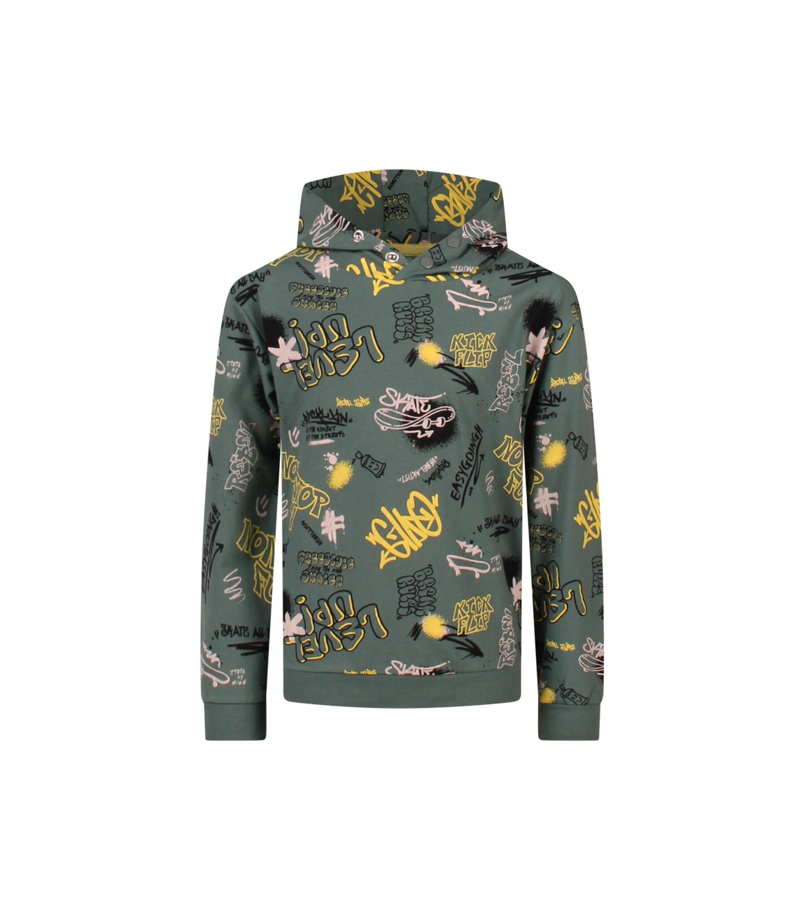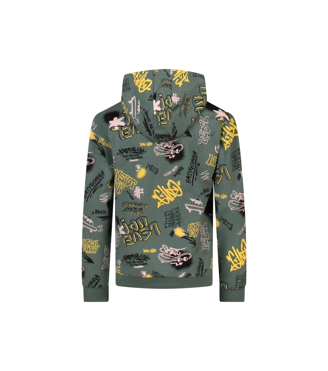 Omschrijving | Co/ly HJ, hood drukknoop, grafittiprint |