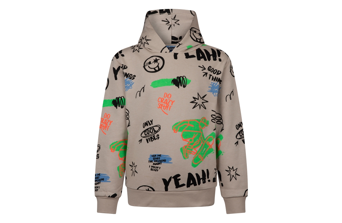 Omschrijving Co/pol sweat, graffitidessin, hood