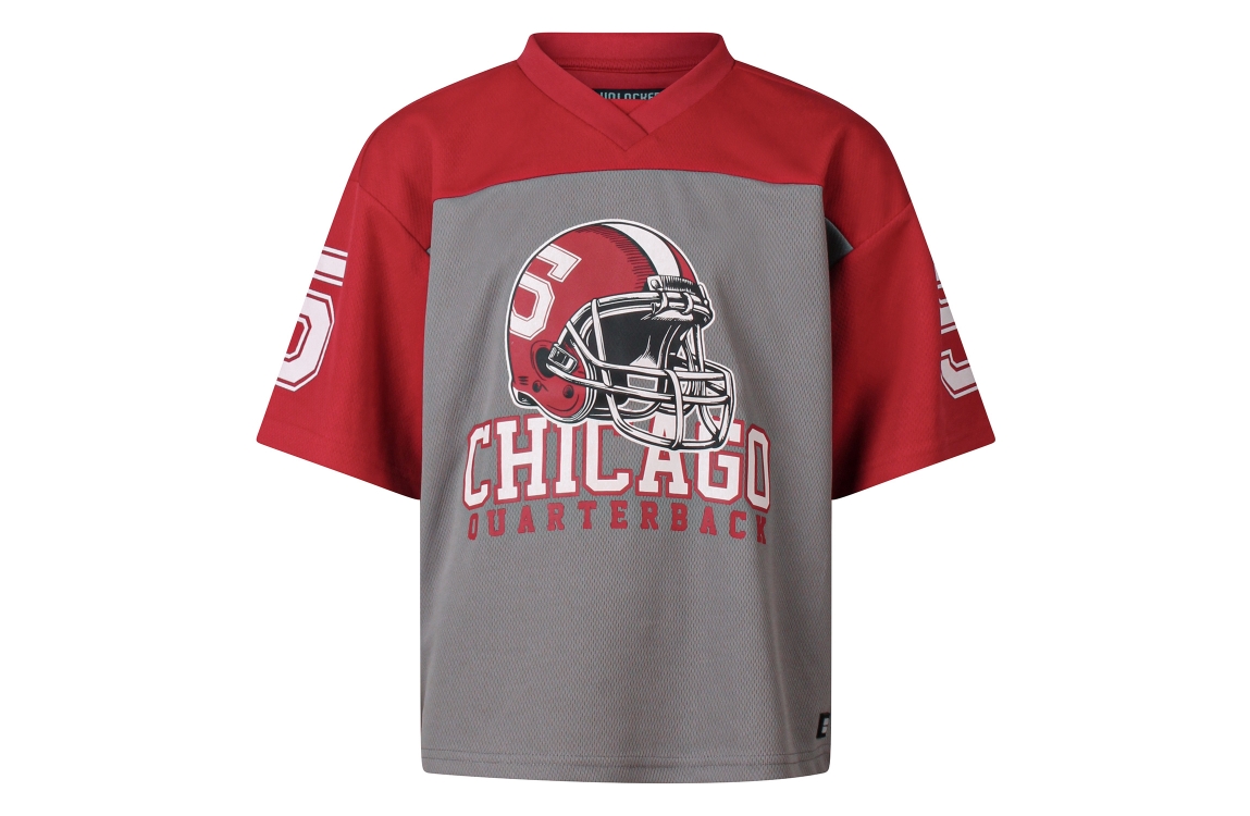 Omschrijving Pol. mesh, v-hals, print helm/tekst