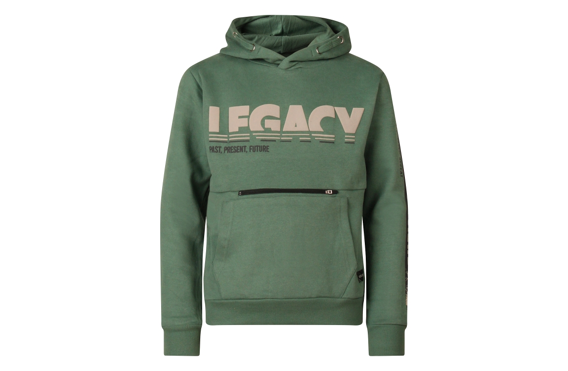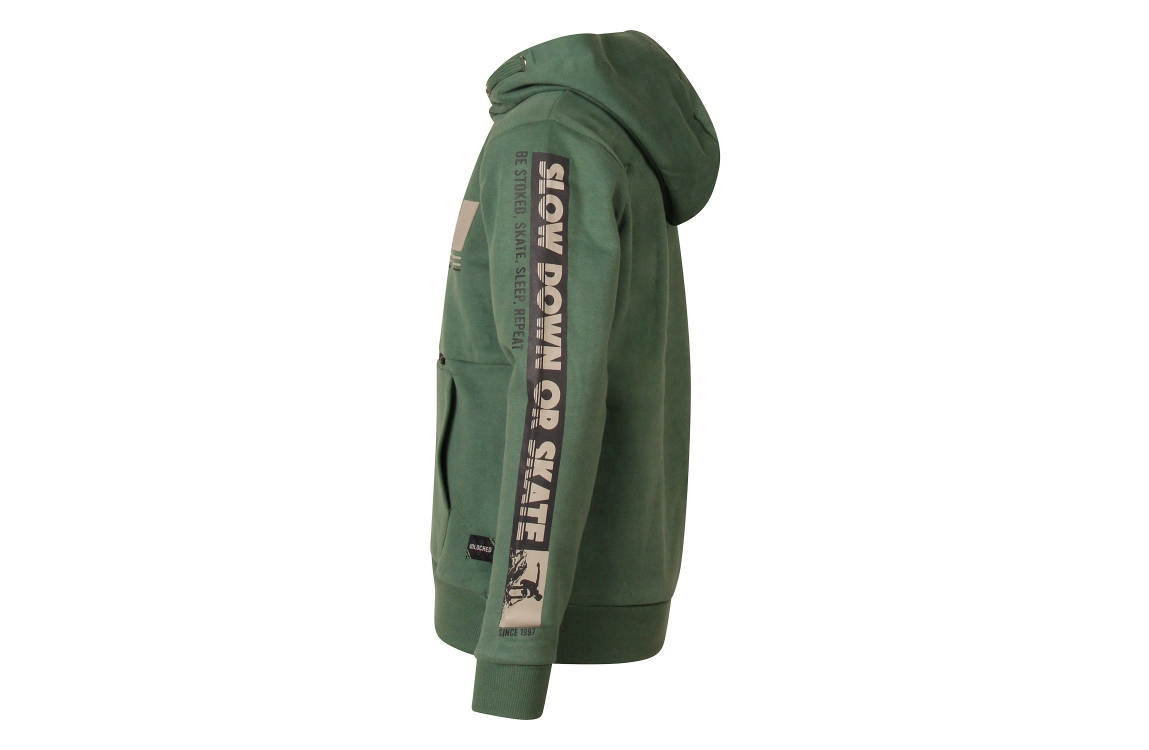 Omschrijving Sweat, hood, tekstprint, rits- en kangeroezak