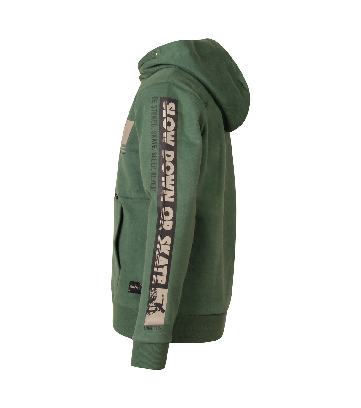 Omschrijving | Sweat, hood, tekstprint, rits- en kangeroezak |