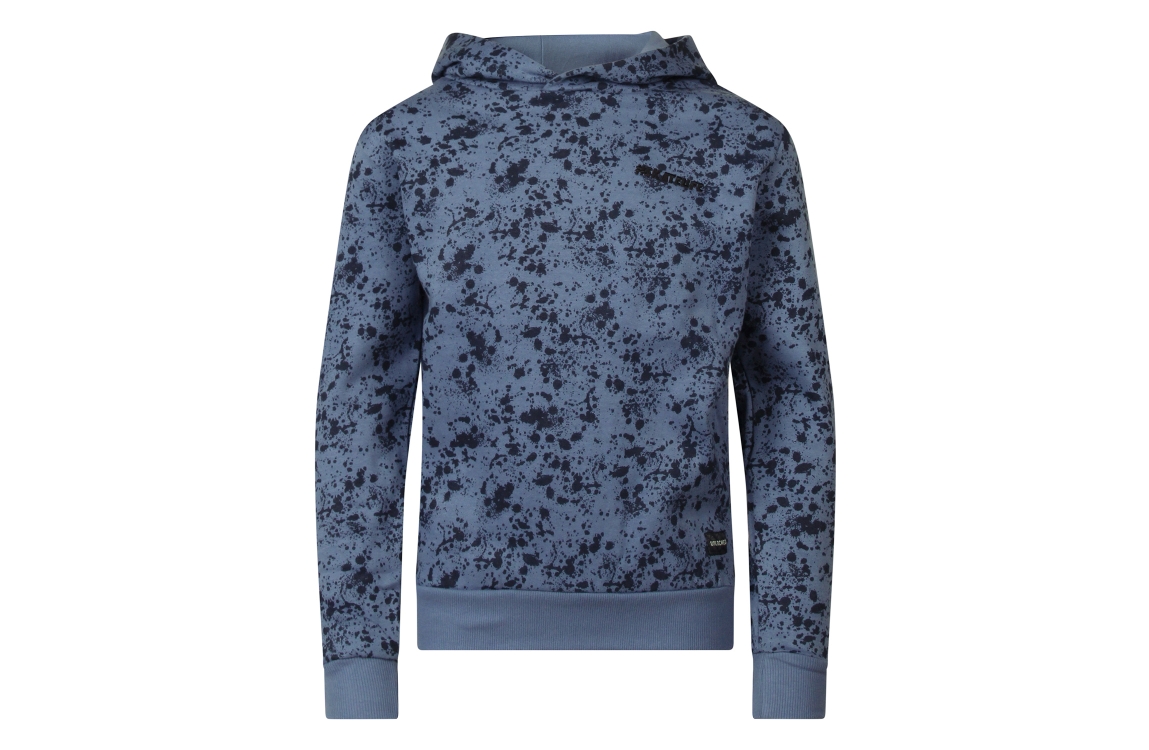 Omschrijving Sweat, spetterprint, hood, tekstborduurtje