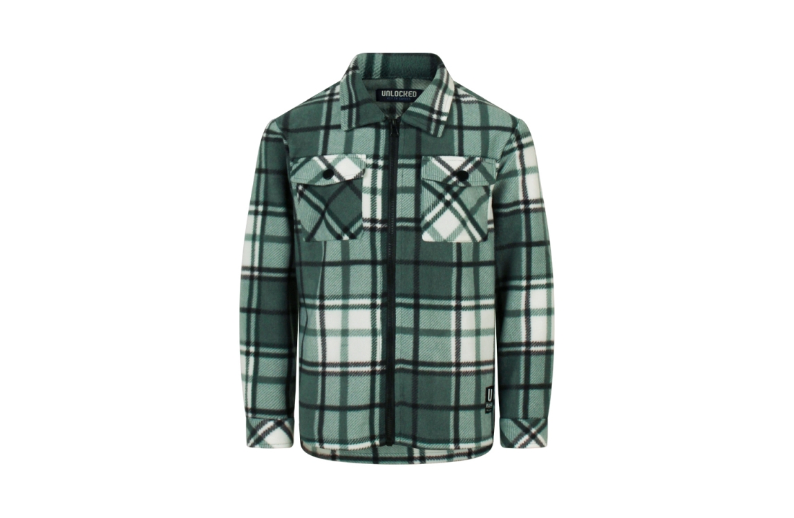 Omschrijving Pol. fleece geruit, rits, klepzakken