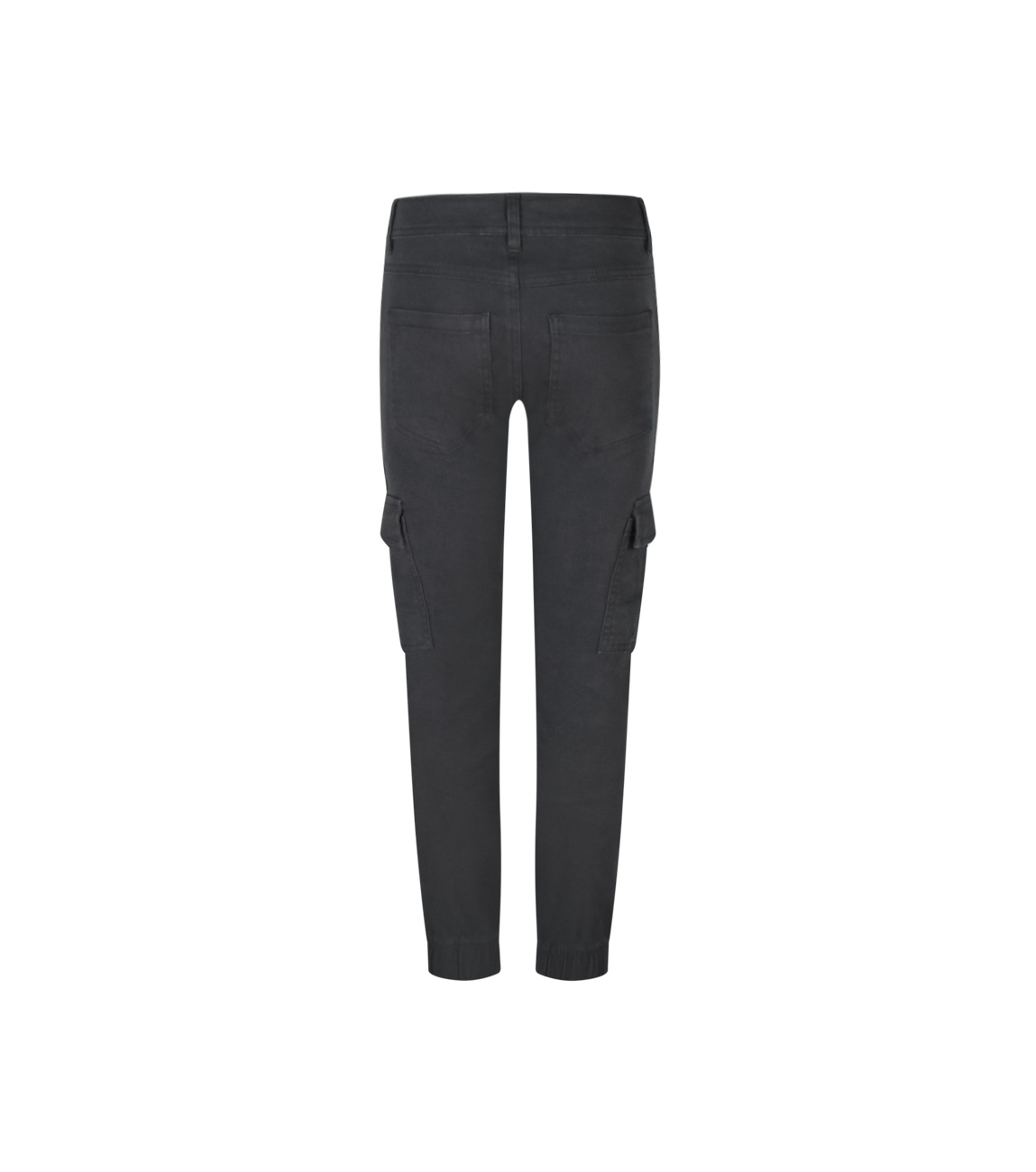 Omschrijving | Co/el twill, zijklepzakken, elastiek pijp |