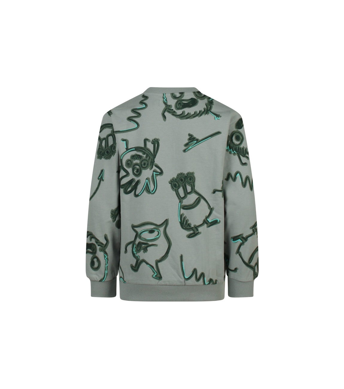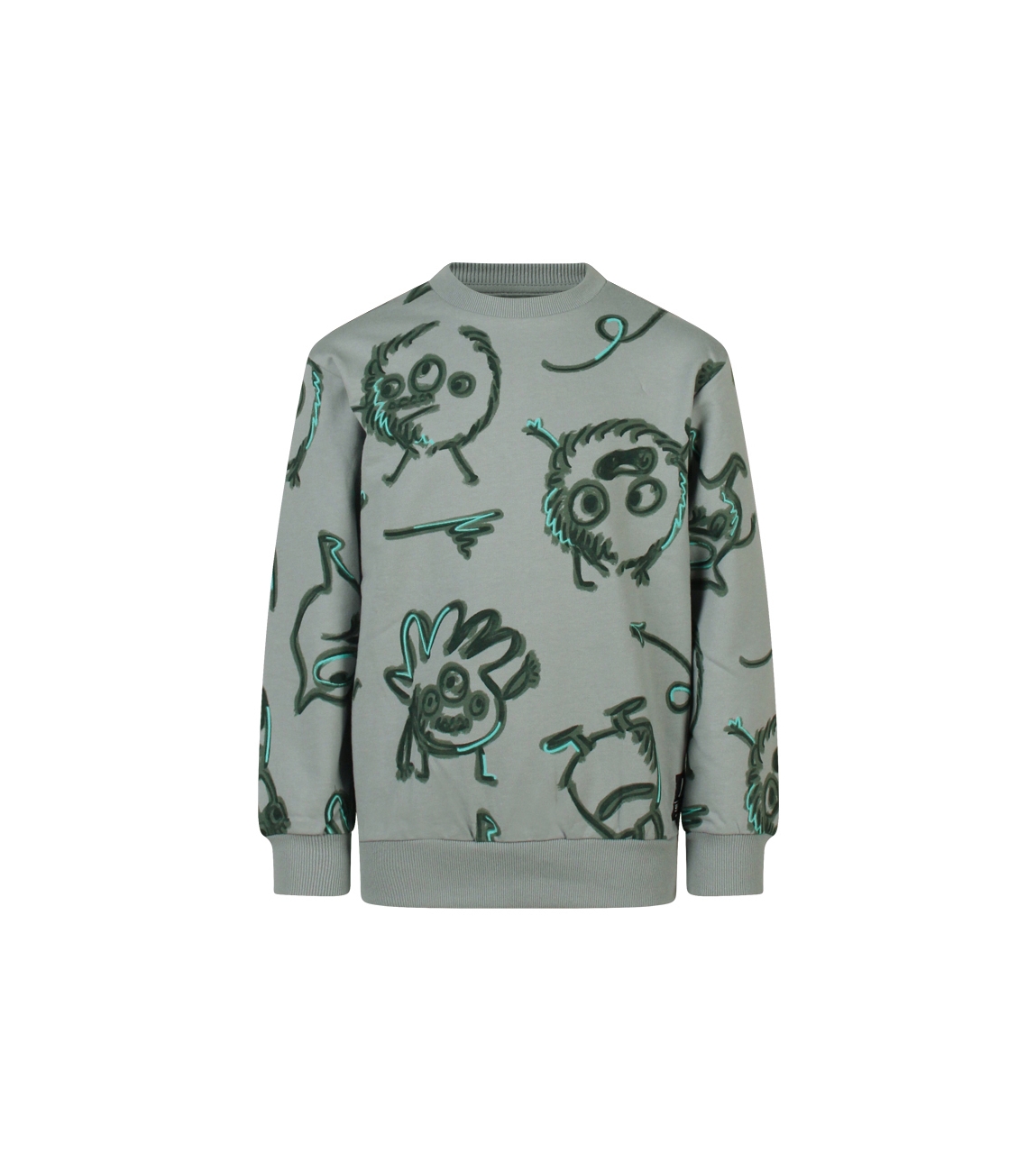 Omschrijving | Sweat, monsterprint, tekstborduur |