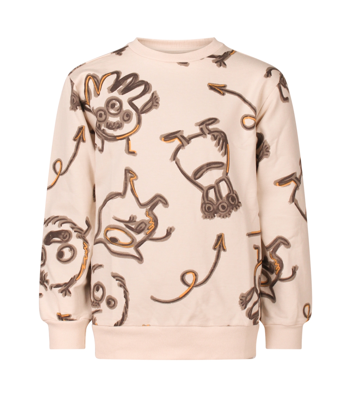 Omschrijving | Sweat, monsterprint, tekstborduur |